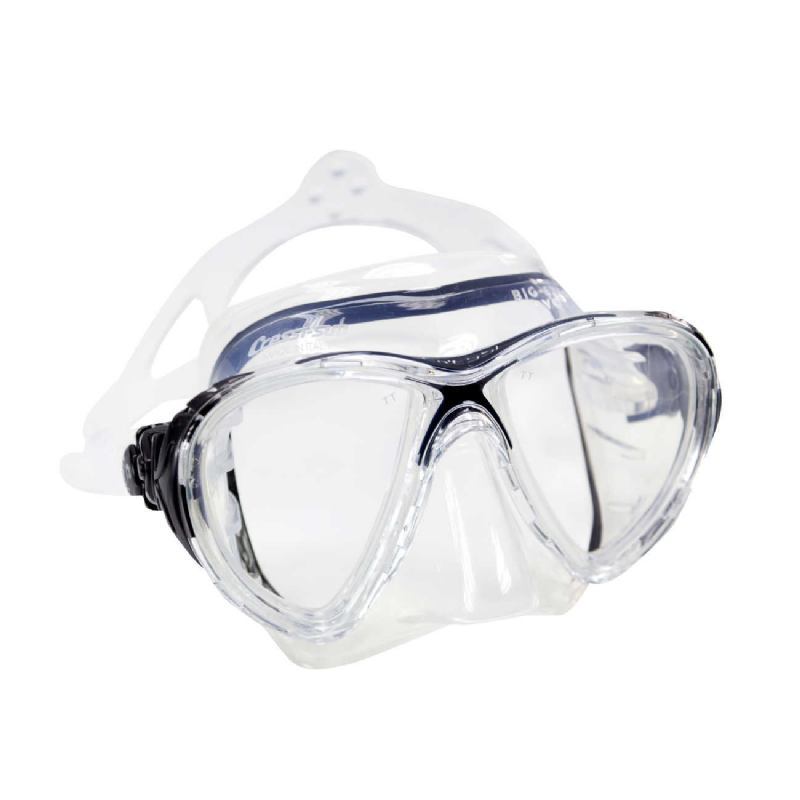 Maska BIG EYES EVO, prozoren silikon z okvirjem rdeče, rumene, modre, sive ali akvamarin barve.